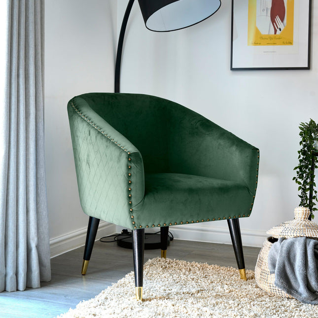 Winston Velvet Accent Chair On Wheels - Black