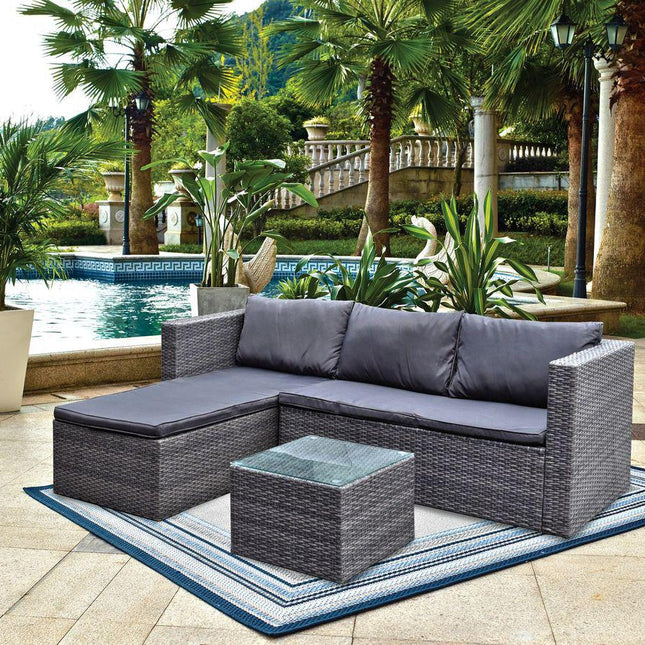 Outdoor Patio Poly Rattan Garden L-Shaped Corner Sofa Set With Cushions Table