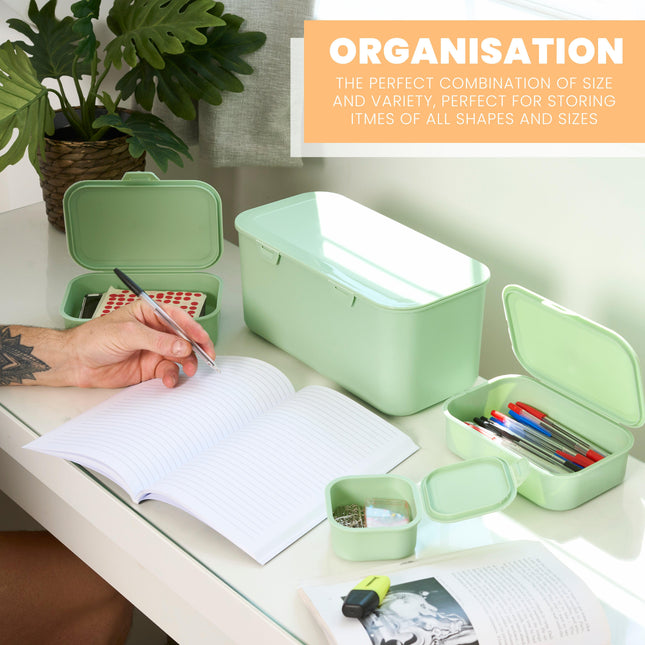 Multi Function Plastic (BPA Free) Storage Boxes With Attached Lids - Orange - Set of 8