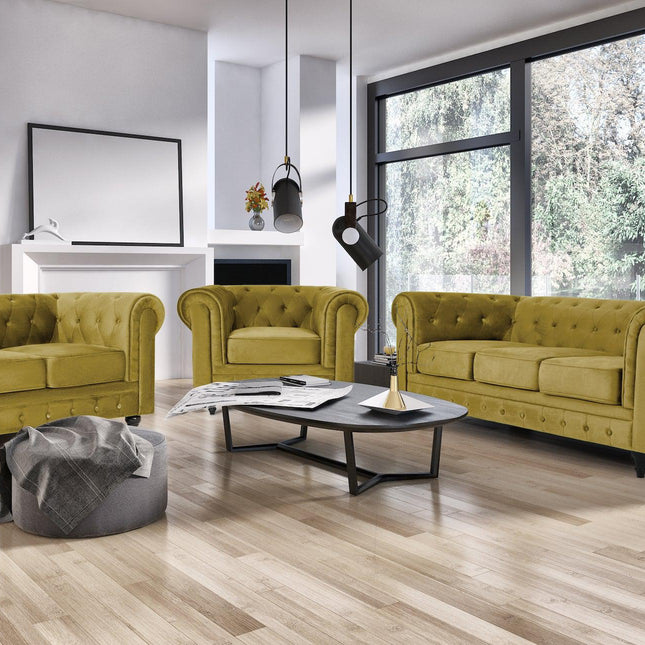 Chesterfield Sofa Suite - Olive Gold Velvet