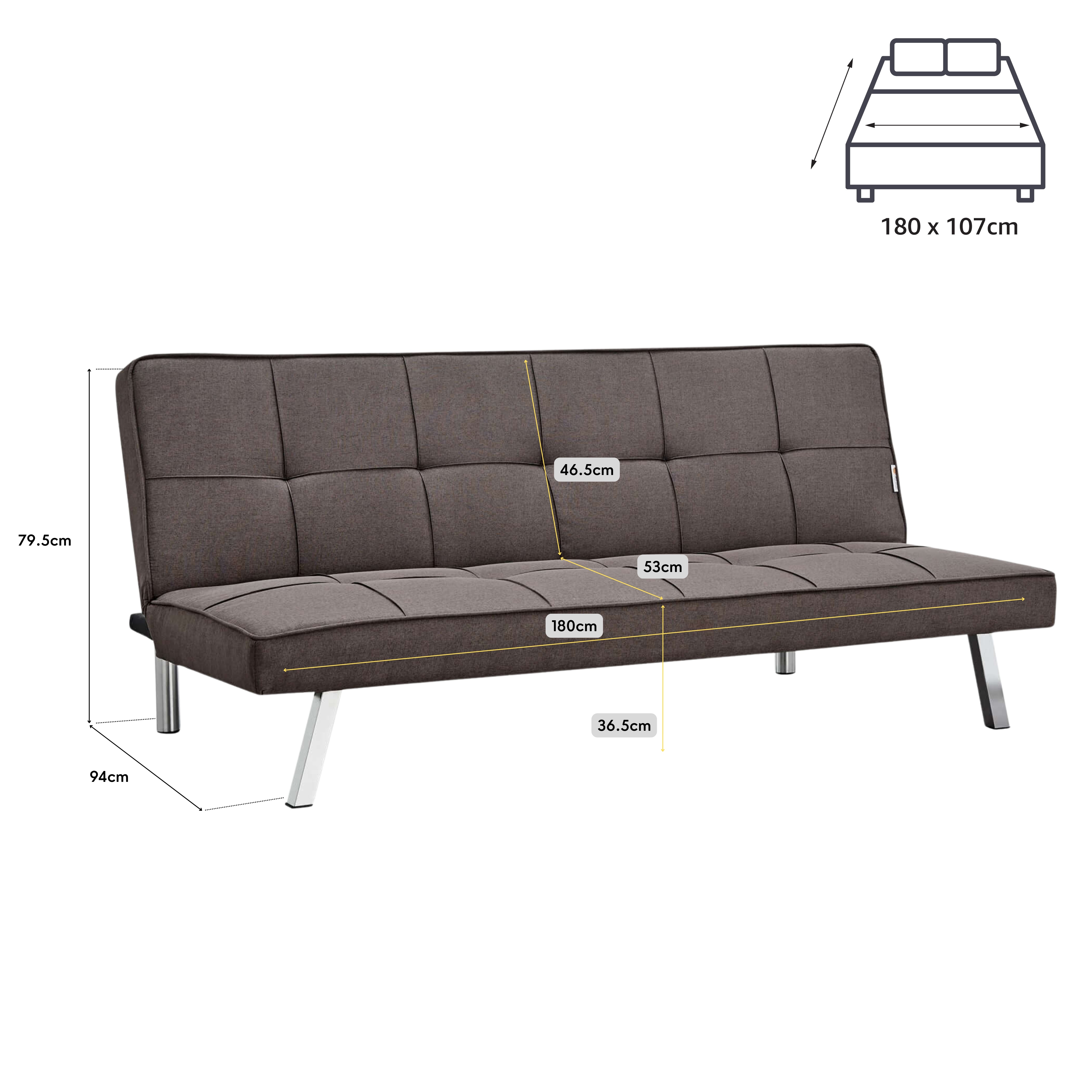 Transformez votre espace de vie avec le canapé-lit Britney Essentials. Doté de pieds chromés élégants, d'un tissu en lin mélangé résistant et d'un mécanisme clic-clac simple d'utilisation, ce meuble polyvalent allie style classique et fonctionnalité pratique dans une riche finition marron.