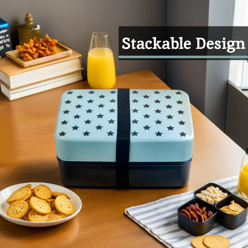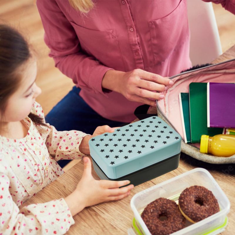Add a playful motif to your lunch routine with the Grub Tub Light Blue Star Lunch Box With Cutlery. At Orsina, the Grub Tub Light Blue Star Lunch Box pairs a cool blue base with black stars and gives you organised, fresh meals through a smart two-tier stack. It is sized for school bags and commuter totes while offering enough room for a satisfying lunch.