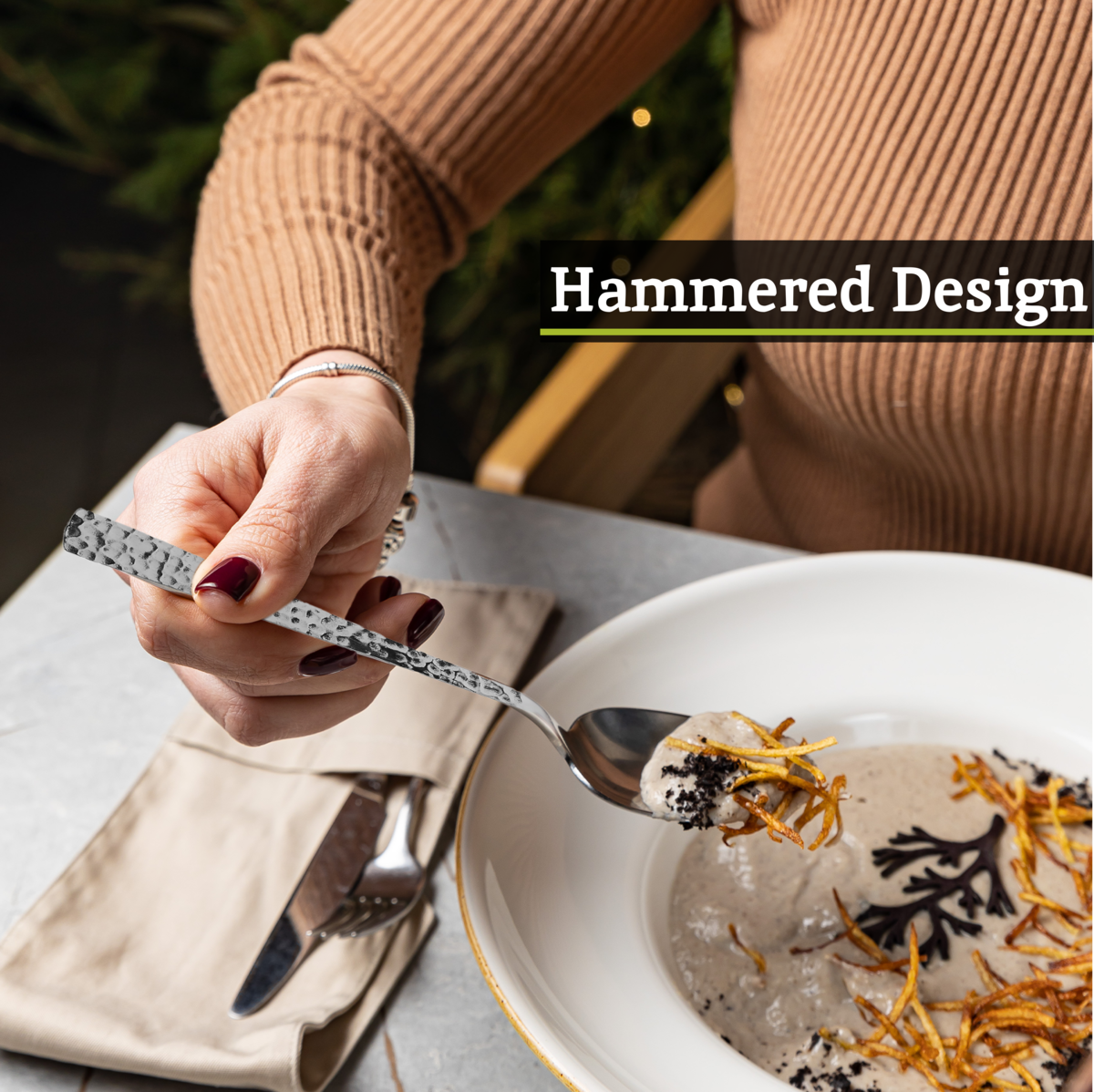 Orsina brings tactile detail to compact households with the Martello 16-piece cutlery set in a silver colour. Designed to serve four place settings, this stainless steel cutlery introduces hammered-like character on the handles that catches the light without overwhelming the dining table. Orsina keeps proportions comfortable for daily service.