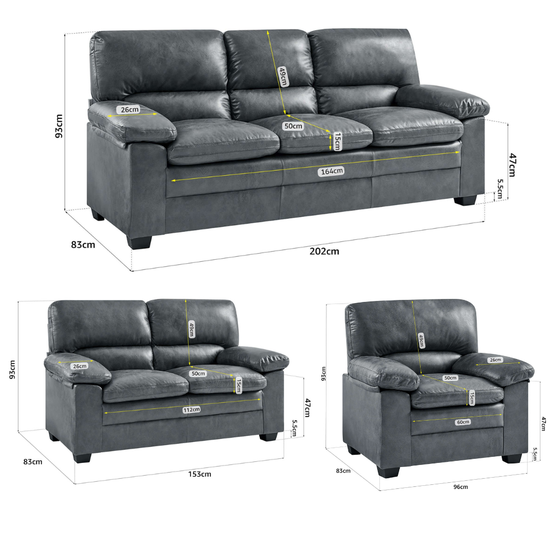 Oxford Sofa Suite Faux Leather - Slate Grey Bargainia