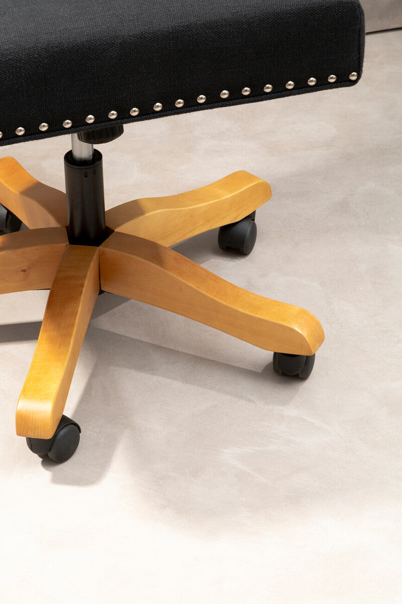 A smoothly rotating seat lets you pivot between tasks with ease, while the wooden five-star base ensures reassuring stability. Discreet hooded casters glide quietly across hard floors and low-pile rugs so you can reposition without breaking flow.