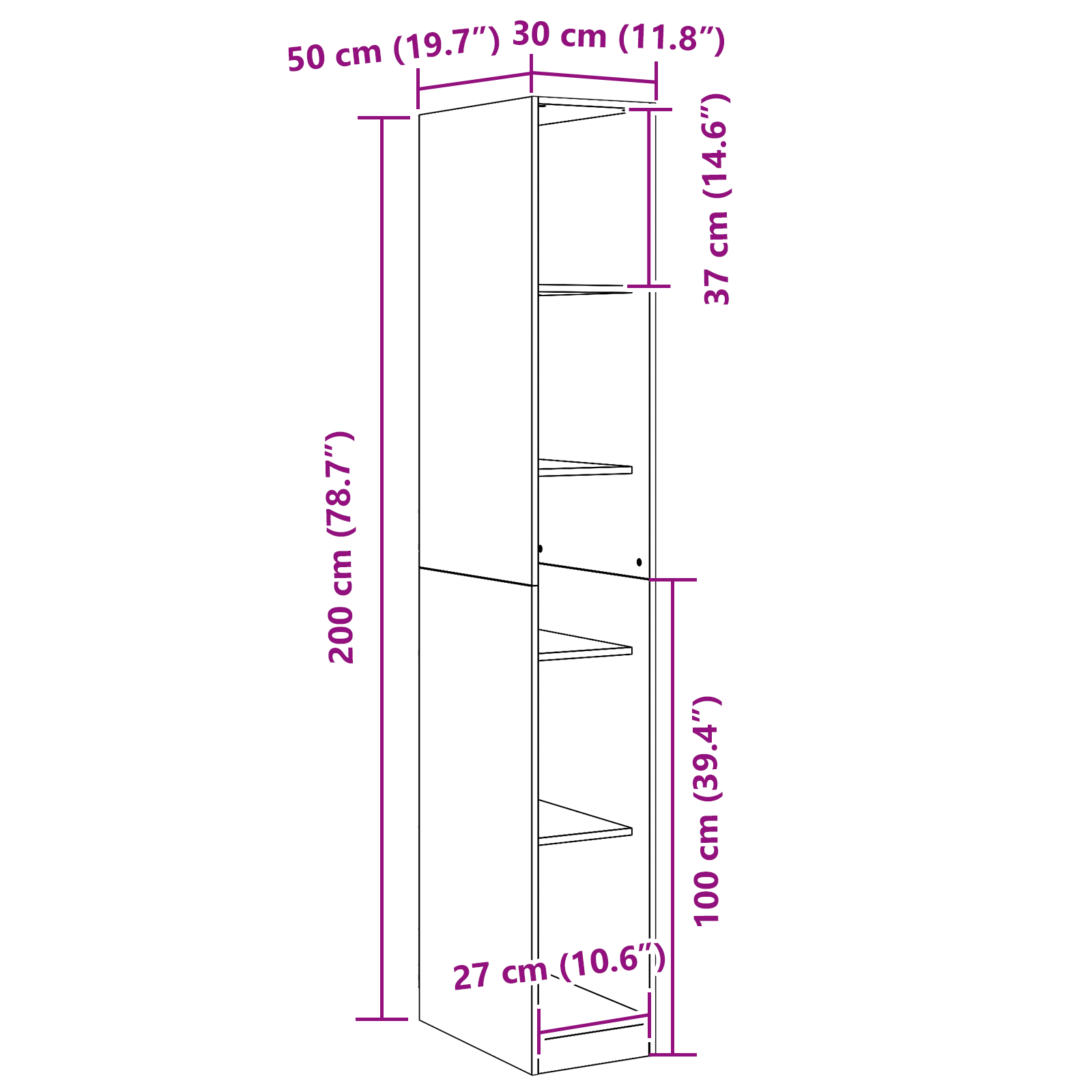 Black Oak Wardrobe - 30x50x200 cm, Made from Engineered Wood