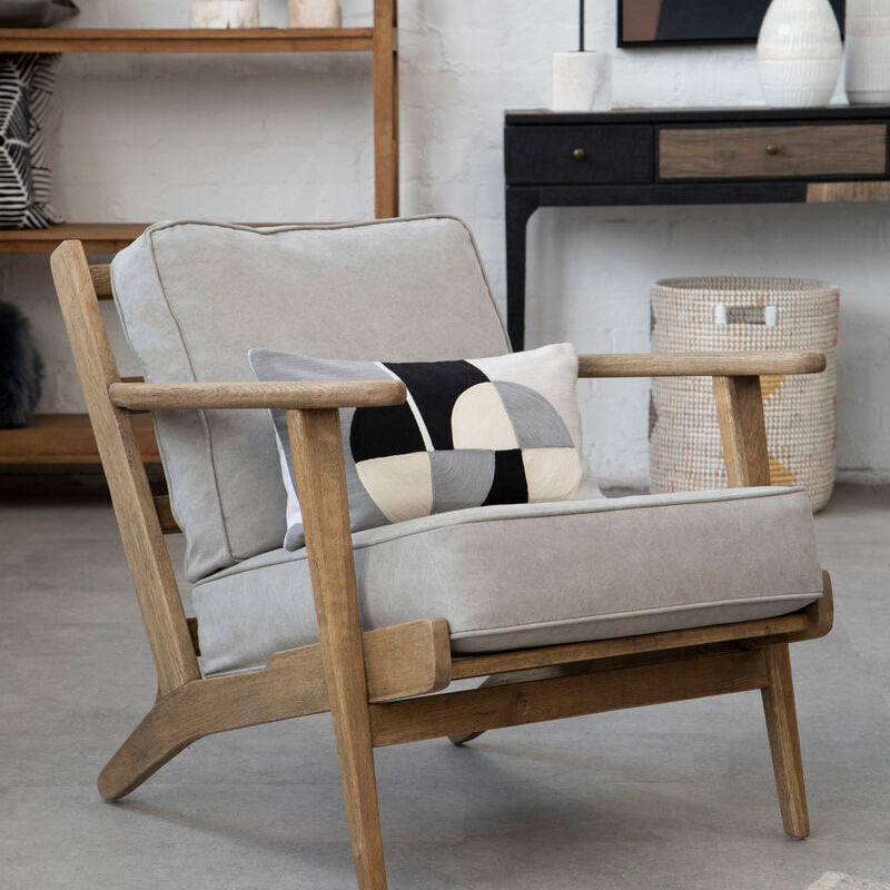 Style it as the front piece in a layered cushion set to create dimension and a boutique finish. The thoughtful mix of print and stitch brings movement to your seating without loud colour, keeping the room calm yet interesting.
