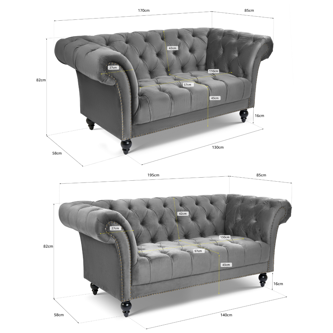 Cambridge Chesterfield Grey Velvet 2 & 3 Seater Sofa Set