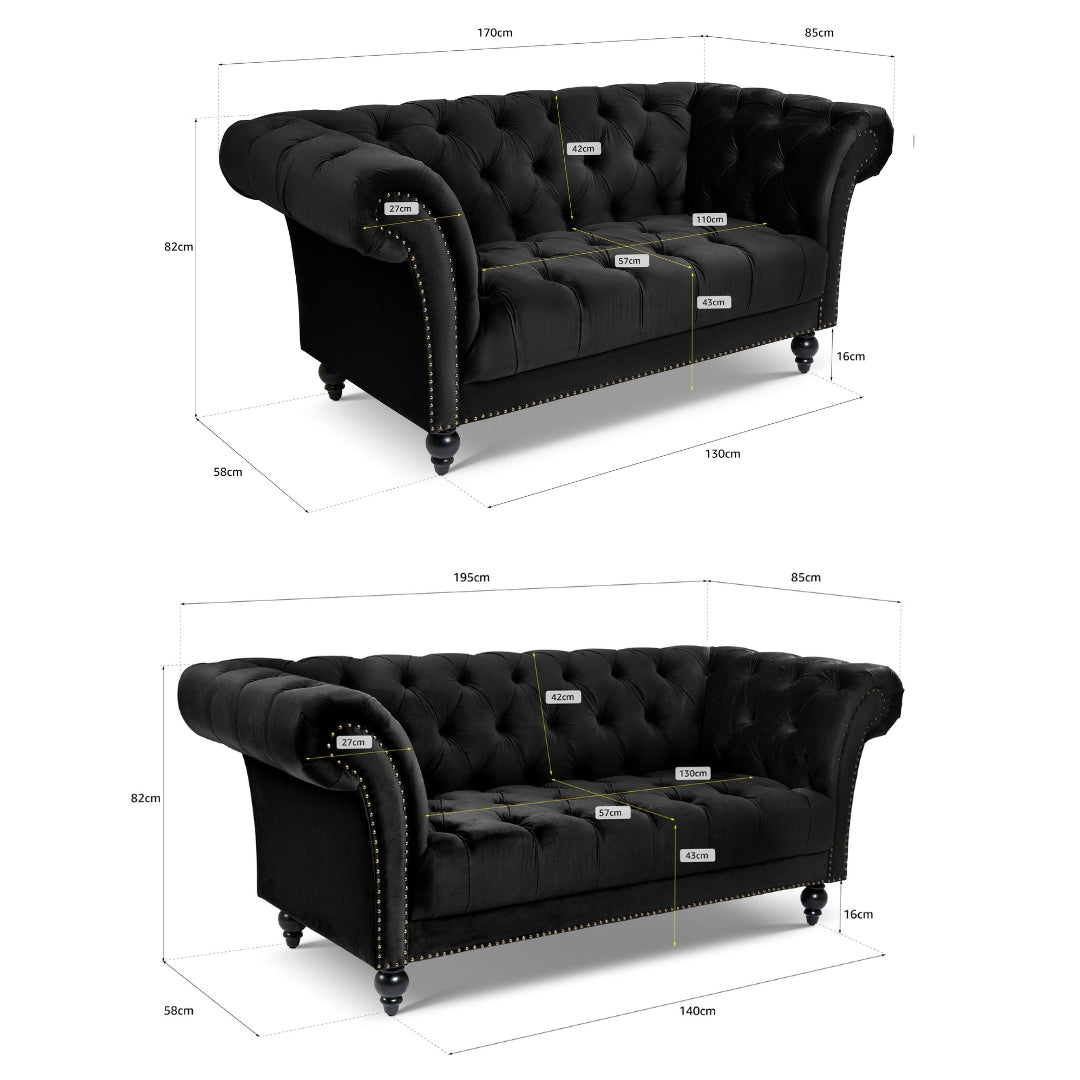 Cambridge Chesterfield Black Velvet 2 & 3 Seater Sofa Set