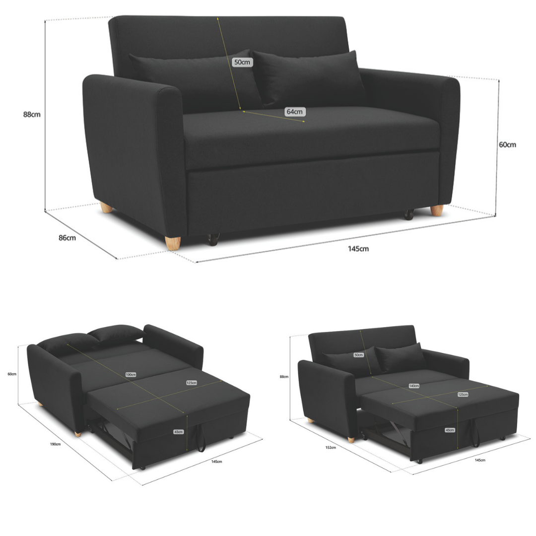 Dahlia Black Two Seater Pull Out Sofa Bed - Convertible Sleeper Sofa