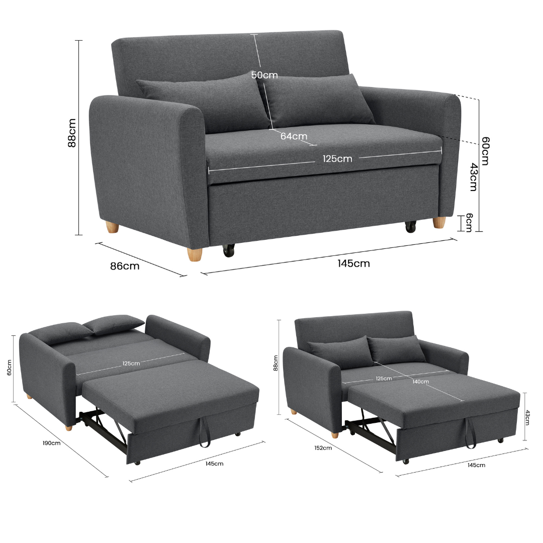 Dahlia Grey Two Seater Pull Out Sofa Bed - Convertible Sleeper Sofa