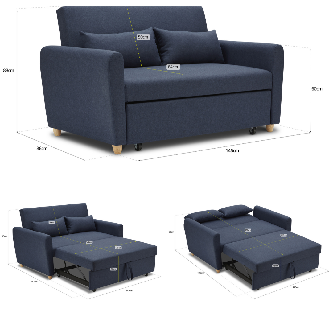 Dahlia Navy Blue Two Seater Pull Out Sofa Bed - Convertible Sleeper Sofa