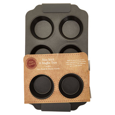 Bake perfect muffins and cupcakes every time with the From Scratch Grey Six Cup Muffin Tray, a dependable six-cup pan that fits smaller ovens and everyday batches. Listed on Orsina, the muffin tray pairs a quality non-stick interior with heat-safe silicone side grips so batters rise evenly and release with a gentle twist.