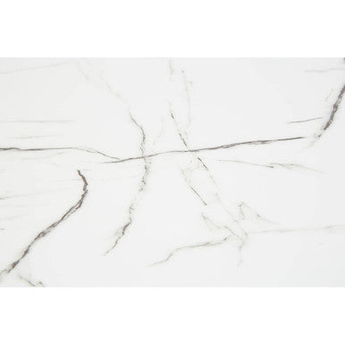 This 7pc dining set features a rectangular table with a white marble effect top that contrast the sleek hairpin legs. Each chair has a dark grey curved back complemented with black finish angular legs that further the sophistication.